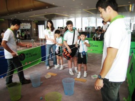 在恒生義工陪同下,小朋友積極參與各式各樣的乒乓球攤位遊戲,贏取豐富獎品。