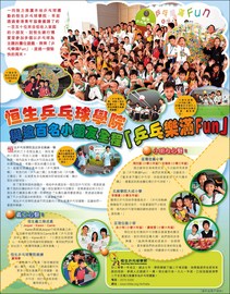 恒生乒乓球學院乒乓樂滿「Fun」已於10月25日圓滿結束,當日之活動更於11月7日蘋果日報及頭條日報刊登報導。