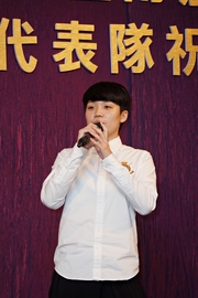 「年頭一眾青年球手,包括黃鎮廷、何鈞傑、孔嘉德、林兆恒、李漢銘、李皓晴、吳穎嵐及杜凱琹等,他們在連串的國際賽事中取得很多金、銀、銅牌,而在五月於日本舉行的世界賽,姜華珺,帖雅娜帶領一眾小花出戰團體賽,並以小組第一名出線前八,最後贏得銅牌,賽後總會舉行了祝捷會,其實,乒總一年內兩次舉辦祝捷會,都唔係有好多次,但可以嘅話,希望祝捷會可以搞多啲,喺咪呀會長(余潤興先生)?」余主席此番話即時贏得全場熱烈掌聲。