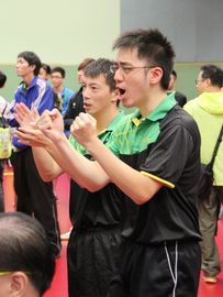 但原來這支升班球隊「金輝A隊」是上屆乙組冠軍,成員卻是臥虎藏龍,朱振宗、王德龍和梁灝程,三位球手分別代表了老、中、青三代代表,各自都不同年紀,不同背景,卻產生了微妙的化學作用。梁灝程出生於1998年,2009年加入恒生精英隊,2012年至今為香港青少年隊成員,自幼受家人薰陶之下,愛上了乒乓球。由於長期於香港體育學院接受系統化訓練,實力亦與日俱增,成為隊中主力。雖然擔當主力的角色,不過他仍謙虛向前輩們學習,務求精益求精:「能從他們(前輩)身上學到的絕對是比賽經驗,在一些關鍵時刻裡,如何能夠更穩定地處理比賽是我需要學習的。當然亦有一些技術上的指導,例如是他們在發球後,如何盤算對方的進攻套路等等,然後自己在訓練時嘗試套用和演化出自己的打法,不過也不是萬試萬靈,也有效果不好的例子,那便唯有再向前輩們重複『偷師』。」技術是學了,應對的方法是學了,但面對前輩的監場,壓力會否隨之而來呢?梁灝程謂:「也不會感到太大壓力,因為前輩對勝負得失能夠看得開。」對於梁灝程而言,兩位前輩的角色是一個學習的楷模,觀看前輩的比賽就像上了一課。