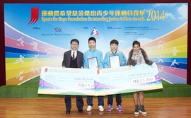 運動燃希望基金(運燃基金)傑出青少年運動員選舉二零一四年第三季頒獎典禮,昨天(18日)假香港體育學院舉行,共有八名青少年運動員獲獎,包括﹕陳鈺文(賽艇)、戚浩賢及謝瑞麟(帆船)、雷曉琳及袁浚熙(壁球)、杜凱琹及孔嘉德(乒乓球),以及陳梓杰(滑浪風帆)。本會球員杜凱琹及孔嘉德憑以下賽事獲得「傑出青少年運動員」殊榮:
