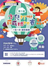 「Samsung 第59屆體育節 – 第二屆少兒打吡乒乓球比賽」將於4月23日 (星期六) 早上9時假歌和老街乒乓球中心舉行,歡迎各界人士蒞臨參觀。