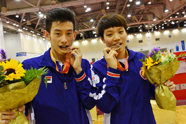 混雙拍檔黃鎮廷/杜凱琹於四強戰面對跨國組合、中國的許昕及南韓梁夏銀,開局不久後者先取首兩局,第三局黃鎮廷在關鍵時刻連續兩下以反拉得分,連贏三分以11-9拿下,追成盤數1-2,港隊終以總盤數1-4(6-11,5-11,11-9,5-11,9-11)不敵,四強止步,但已為港隊奪得一面銅牌。