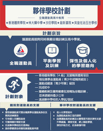 體院與林大輝中學、沙田學院、啟新書院及佐治五世學校合作,由合作學校為有志投入全識訓練的青少年運動員,提供度身訂造的高中課程,讓運動員一邊在體院訓練,同時在學校完成高中課程。此計劃將於2015/16 年展開。
