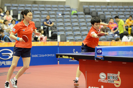 女雙準決賽於下午一時半上演,港隊杜凱琹/姜華珺硬撼武楊/劉斐的一對中國組合,在力戰下以1﹕3(4-11,5-11,11-8,6-11)惜敗,無緣決賽,但亦獲女雙銅牌。