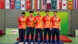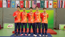 上月澳洲公開賽個入取得金、銀、銅牌各一的港隊新星何鈞傑,在本屆亞青賽為港青領軍,聯同孔嘉德、關文皓及李逸軒角逐青年組U18男團體賽,八強賽港隊以3﹕0輕取新加坡晋身四強,準決賽硬撼韓國,在激戰五場下,港隊最終以2﹕3飲恨,無緣決賽,但亦為港隊摘下U18男團銅牌。