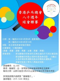 為慶祝香港乒乓總會成立八十週年及為乒乓球愛好者提供更多比賽機會,進一步推廣本港乒乓球運動,香港乒乓總會將於2016年舉辦「香港乒乓總會八十週年球會聯賽」,藉球會的組織聯繫各界,加強維繫會員及廣大球迷對乒乓球的興趣,令乒乓球運動更加深入社群。