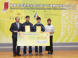 由香港體育學院主辦,並得到港協暨奧委會和體記協會的支持,運動燃希望基金(運燃基金)傑出青少年運動員選舉二零一五年周年慶祝活動及第四季頒獎典禮於昨天(2016年3月3日)假香港體育學院(體院)舉行,港男子青少年乒乓球運動員何鈞傑、吳柏男、關文皓和李逸軒憑著「2015世界青少年乒乓球錦標賽 – 青年團體季軍」而獲獎,合共獲得港元$10,000的禮券及$10,000的獎狀,各得獎球員家長亦抽空蒞臨頒獎典禮,一同分享喜悅。