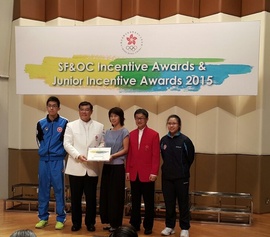 「港協暨奧委會獎勵計劃及青少年獎勵計劃2015」的頒獎儀式於昨天(即2016年6月17日)在奧運大樓舉行,港協暨奧委會每年均會從儲備中撥出獎金予各體育總會,目的是表揚香港運動員在國際綜合運動會和世界/亞洲錦標賽中為香港取得優異成績,今年一共有35個體育總會獲得獎項。本會憑著運動員在2015年的傑出成績,有幸成為獎勵計劃其中一個受惠體育總會,共取得獎金港幣66,000。