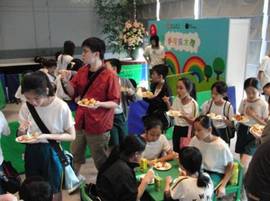 圖三 小朋友們耍玩攤位遊戲後正在享用茶點。