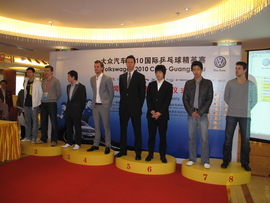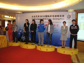 「亞洲盃」剛剛於昨天完成,港隊球員高禮澤以0:4不敵中國隊許昕,取得第四名。而緊接著的是「大眾杯」,是次賽事將於今明兩天假廣州體育館舉行。「大眾杯」是2010國際乒聯首次主辦之新項目,屬於邀請賽,世界排名前八名的男、女球員獲邀參加是次賽事,而張鈺及姜華珺將出戰是次賽事。參賽球員名單如下: