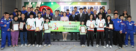 圖片 1 : 恒生銀行副董事長兼行政總裁梁高美懿女士(第2排,右9)、香港乒乓總會主席余國樑先生(第2排,右10)、中國香港體育協會暨奧林匹克委員會會長霍震霆議員(第2排,右8),以及康樂及文化事務署副署長(康樂事務)鄭錦榮先生(第2排,右7)與各得獎球員合照。