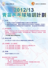 現已開始接受報名。 參加者須接受乒乓球技術測試,表現較佳的參加者將獲通知繳費及被接納進入第一階段的循序漸進式訓練。