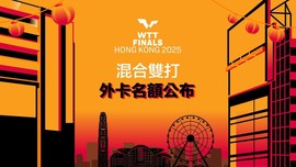 WTT香港總決賽將於12月10日至14日在香港紅磡體育館舉行,匯聚本賽季表現最出色的選手,包括男、女子單打各 16 名球員,七對混雙組合以及一對外卡組合。王楚欽/孫穎莎以外卡身分加入混雙項目,讓本來已強手雲集的比賽更萬眾矚目。