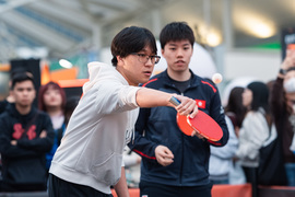 在WTT總決賽公園,分別由與黃鎮廷並列男子雙打世界排名第一的陳顥樺及2025年世界大學生運動會女子單打銅牌得主吳詠琳與參加者「零距離」交流,與參加者切磋乒乓球及合照留念。隨後,參加者觀看本地組合「黃杜配」- 黃鎮廷和杜凱琹對戰中國隊的首場混合雙打比賽,親身感受國際級比賽的現場氛圍。