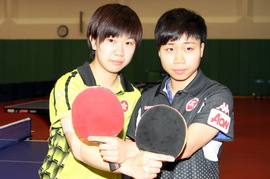 首次參加世界女團體賽的小將李皓晴(左)及吳穎嵐成為傳媒寵兒。 |