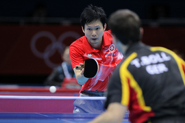 梁柱恩打頭陣挑戰世界排名第7的德國名將波爾 (ITTF 圖片) |