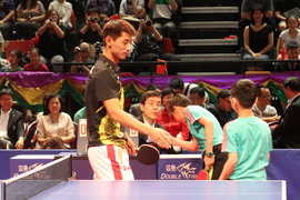 少兒精英運動員與國家金牌選手張繼科交流後握手致謝。 |