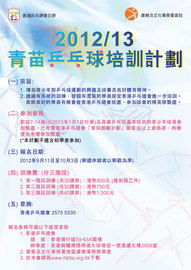 2012 / 2013 年度青苗乒乓球培訓計劃 - 區際錦標賽總成績公佈。