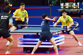 在閉幕日(11月4日)上演的男雙爭霸戰,港隊接受由克羅地亞及波蘭球手(TAN Ruiwu / WANG Zengyi)組成的混合隊挑戰,雖然混合隊在第三局以11﹕9追回一局,但江天一/黃鎮廷最終清脆俐落地以局數4﹕1殺敗對手而踏上頒獎台的最高一級。