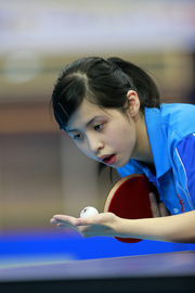 She went ahead 6-4; the next point was won by Lee Zion. Sitting courtside in the role of coach was her colleague, Doo Hoi Kem; she called “Time Out”.