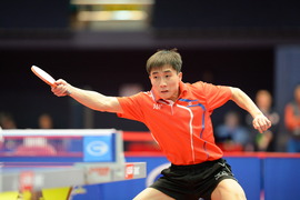 The host’s Tang Peng and DPR Korea’s Kim Hyok Bong emerged successful in the qualification play-off round of the Men’s Singles event at the GAC GROUP Asian Cup in Hong Kong on the morning of Saturday 13th April 2013 after the initial contests to start the day had witnessed mixed fortunes for Japan.