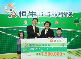 恒生銀行於今日舉行的「恒生乒乓球學院」(學院)2012畢業典禮中宣佈,將於未來三年撥款港幣750萬元予學院,舉辦超過1,000項乒乓球訓練及推廣活動。連同是次撥款,恒生自1991年已投放超過港幣3,850萬元支持本地乒乓球發展,為香港乒壇培育明日之星。
