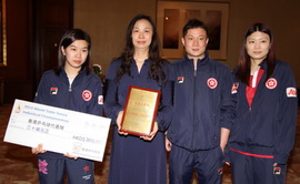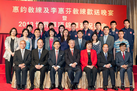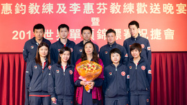 為歡送香港隊總教練惠鈞及香港女隊教練李惠芬榮休,以及祝賀港隊在上周「世界乒乓球單項錦標賽」有尚佳表現,特別是港隊混雙組合張鈺/姜華珺再一次奪得混雙銅牌,本會今晚(27日)假港麗酒店舉行「歡送」暨「祝捷」晚會,一眾代表隊成員均有出場,共享了一個既喜悅,又溫馨感人的一個晚上。