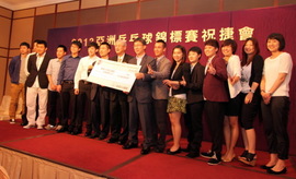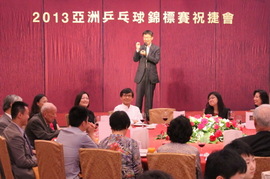 2013亞洲乒乓球錦標賽上周日於韓國曲終人散,奪得一銀一銅的香港乒乓球代表隊已由釜山凱旋返港。本會昨晚(15日)假山光道馬會青雲閣舉行慶功宴,為隊員打氣及論功行賞!在頒發巨型獎金支票時,會長余潤興先生及主席余國樑先生即席宣布「加碼」,獎金由16萬加至30萬,此舉,也為香港代表隊上下帶來「驚喜」、教練及運動員均雀躍萬分,可謂皆大歡喜。