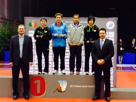日前在葡萄牙取得2014南京青年奧運會「入場券」的港隊小花杜凱琹,今日(26日)挾着青奧資格賽長勝的餘威,在今日「2013國際乒聯青少年巡迴賽總決賽」決賽日,再闖兩關,決賽在先失兩局下,最後連贏四局,以4﹕2(8-11,9-11,11-5,11-6,11-5,11-6)力挫台北選手黃鬱雯,勇奪年終賽女單金牌,揚威葡萄牙!而男隊小將孔嘉德也在單打賽事中奪得銅牌。