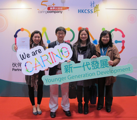 香港乒乓總會主席余國樑先生(左二)與提名機構中華基督教禮賢會香港區會福利部總主任余淑芬女士接受「商界展關懷」獎狀並合照留念。