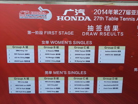 2014亞洲盃乒乓球賽抽籤如下﹕