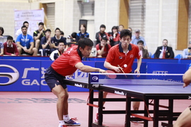 上月初贏得西班牙公開賽男雙冠軍的唐鵬/黃鎮廷,與港隊另一對年輕組合關文皓/麥景皓兵分兩路攻打雙打賽項。港隊兩隊組合在首圈賽事均旗開得勝,唐/黃配以3﹕0輕取JENKINS Ryan / MURPHY John的一隊混合隊,而港隊「雙皓」組合則以3﹕2險勝HU Heming / YAN Xin Chris的一對澳洲組合。可惜,港隊兩對組合在八強遇上,「大師兄」組合以3﹕0( 11-5,11-7,11-3)擊退「雙皓」組合而晉身四強。準決賽遇上新加坡陳峰/吳智康組合,港隊唐/黃配保持強勢,又直落三局 11-7,11-3,11-6殺敗對手,雙打賽事坐亞望冠。