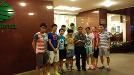 香港代表隊(左起)趙頌熙,麥景皓,李清韻,馬子迅,吳穎嵐,梁灝程,余國賢先生,李皓晴,帖雅娜及李靜教練賽前來一張大合照。 |