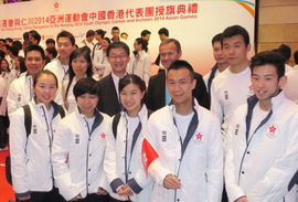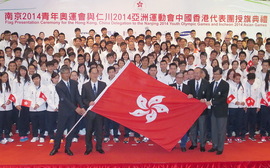 港協今午為兩支代表團舉行出發前授旗儀式,更邀得民政事務局局長曾德成及港協暨奧委會會長霍震霆親臨主禮,為港隊健兒打氣。